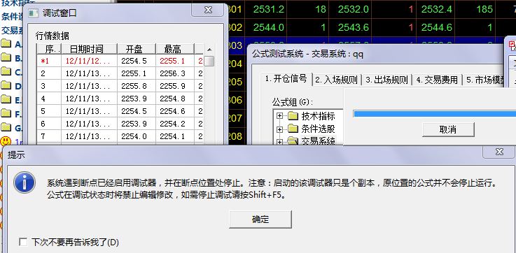 你公式在调试状态下了进行测试。公式会根据断点的情况测试。