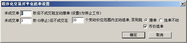 限价 在20个变动价格内 追单       超过20个最小变动价位  就撤单 不追了
