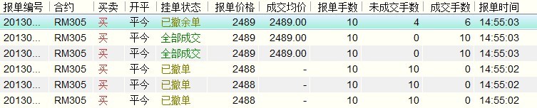 但菜粕出现部分成交情况后,就不会自己再追单了,导致剩下4手,需要手工平仓。