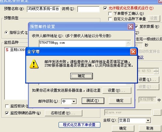 金字塔客服中心 - 专业程序化交易软件提供商金字塔软件金字塔软件问题提交 → 请问预警邮件发送测试总是失败?