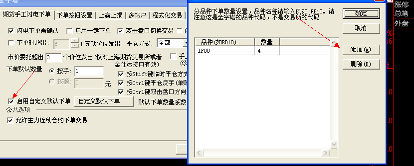 闪电下单面板的设置,比如下单手数和下单系数,能够分品种自动记住,当下次切换到该品种时,能自动回到上次的设置数值。