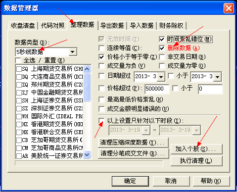 选择5秒周期,勾选 删除数据,选择需要删除数据的长度,选择需要具体合约