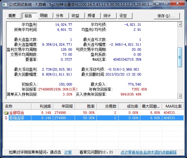 最大连盈幅度:      23.97%(52,036.33)  最大连亏幅度:     -9.42%(-20,823.30)