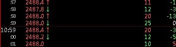 请看如上贴图,我个人觉得,在这种情况下59.5秒的时候再多画一条分笔图的K线(实际上就是一个点),价格设成同前0.5秒价格一样,成交量其实既可以设成0也可以也同前0.5秒设成一样,关系不大,毕竟用分笔图来计算成交量的可能性不大。
