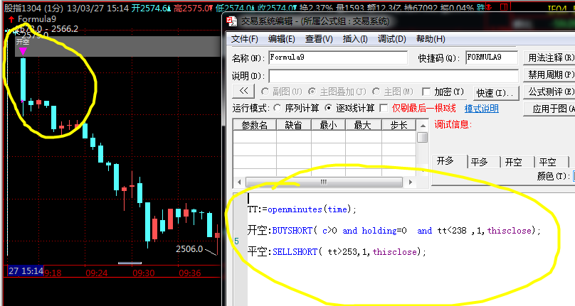 平空:SELLSHORT( tt>253,1,thisclose);