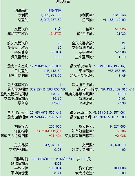 比如上面这个测试年回报率是114.73%,可年有效回报率却只要6.18%,看前面的挺好,可看后面的不敢做了