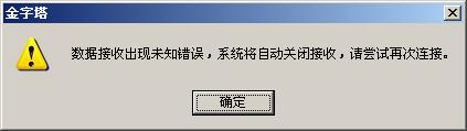 出现上面那个提示后,任务栏右下角的数据接收图标就没掉了,等于数据接收程序关闭了。