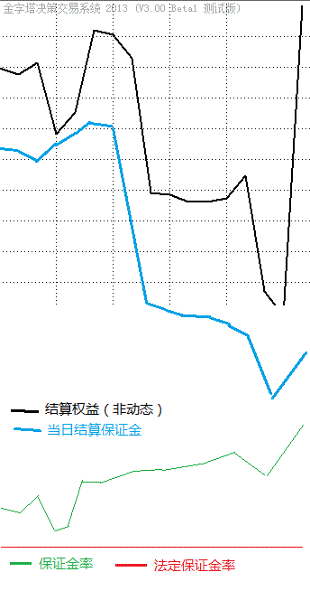 图中最上方的线是3.0评测报告现有的线,其他是我P上去的:蓝线是保证金占用的线,红线是最低保证金率,绿线是实际保证金率(图中叫使用率似乎不妥)
