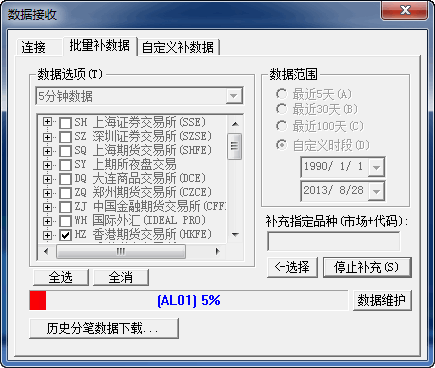 我分别勾选单个品种,或者单个市场(郑州、大连),结果补数据都给补成了上海期货交易所的。