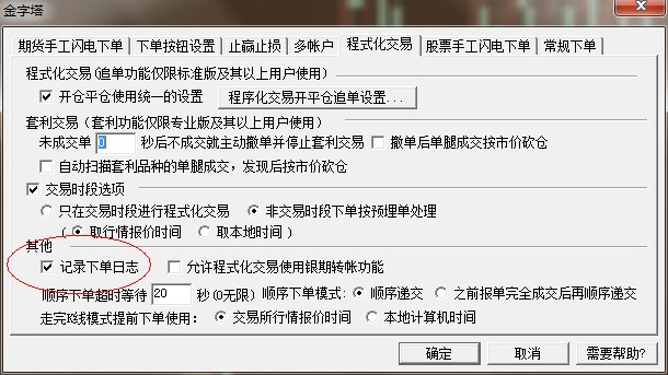 交易-下单设置,然后勾选下单日志