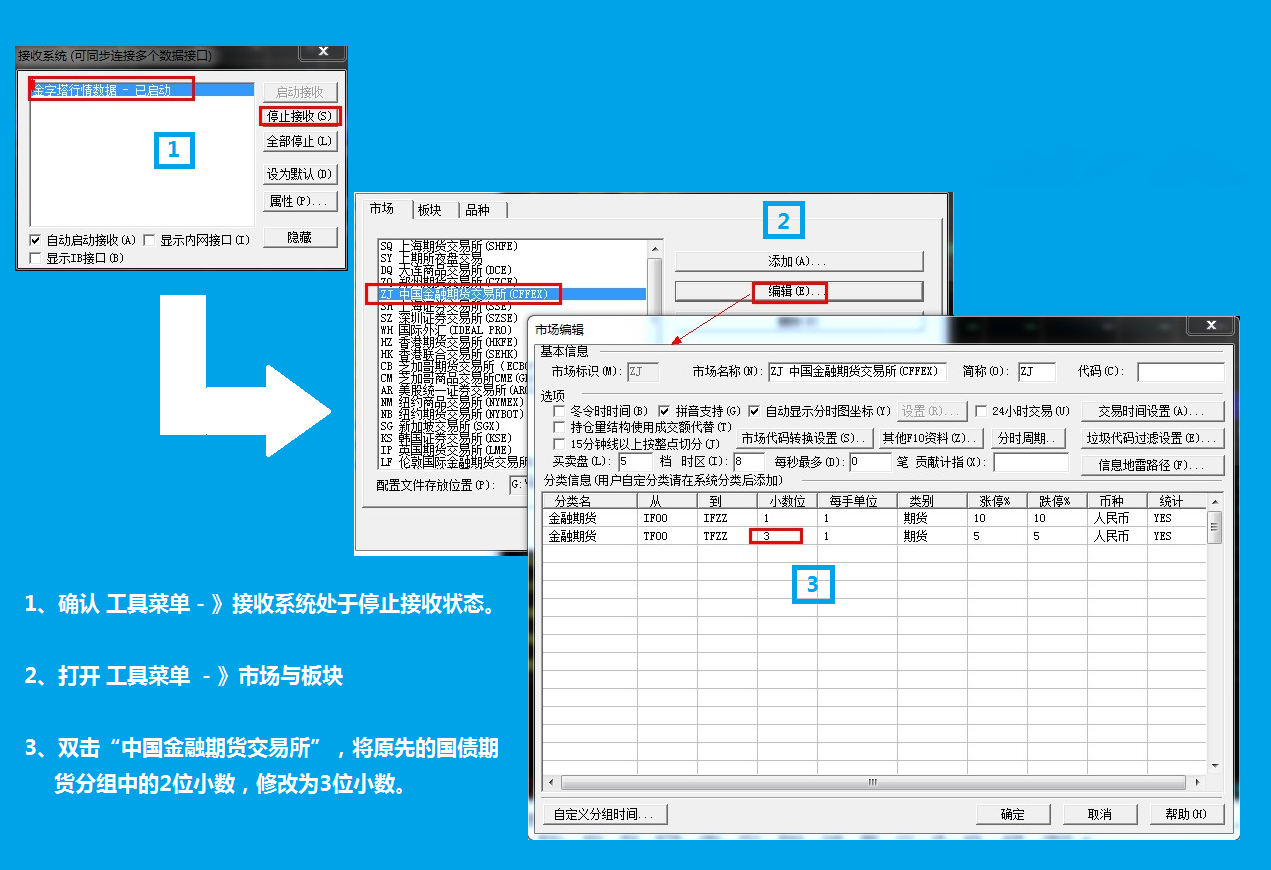 工具菜单 -》市场与板块-》双击“中国金融期货交易所”,将原先的国债期货分组中的2位小数,修改为3位小数。