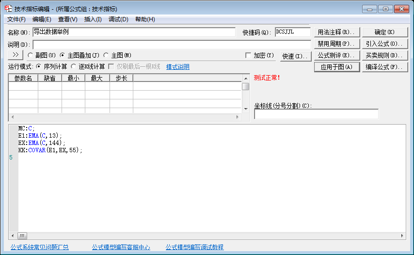 例如,我要导出螺纹钢5分钟的收盘价,以及13日均线价格,首先编写如图