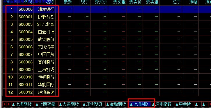 您输入上海A股里的任意一个品种 例如:输入600000 回车键 就能出现了
