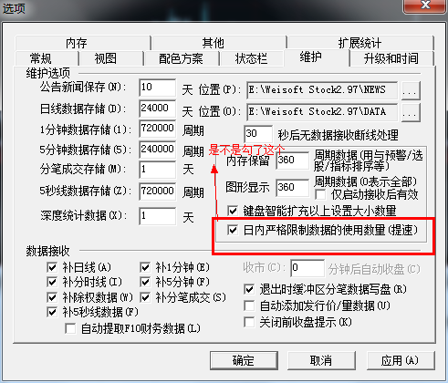 交易时段,盘中能显示和参与计算的数据受限了。盘后可以显示更长的数据,而盘中则只能显示有限的数据。怎么弄得更长?