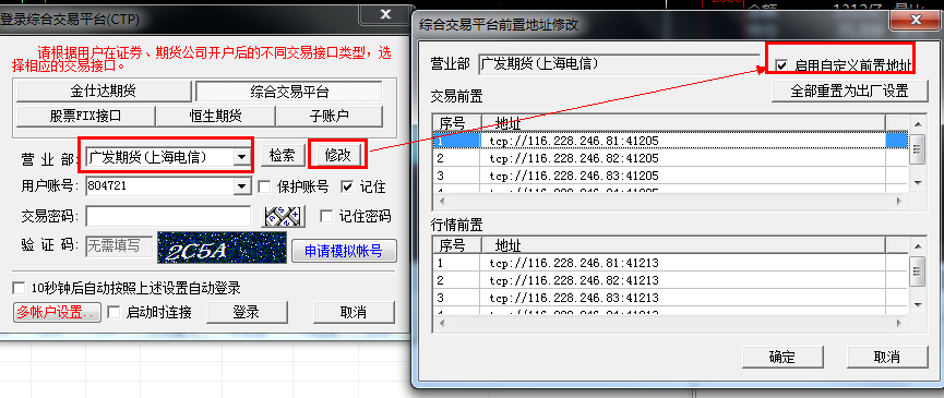 期货公司给了个通道快的地址和端口,如何在金字塔里设置;谢谢咯!