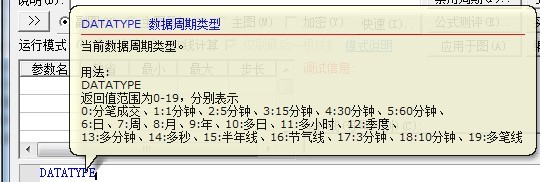 您好,DATATYPE 的返回值范围0—19  返回哪个值是根据当前周期数据类型 您看下函数说明