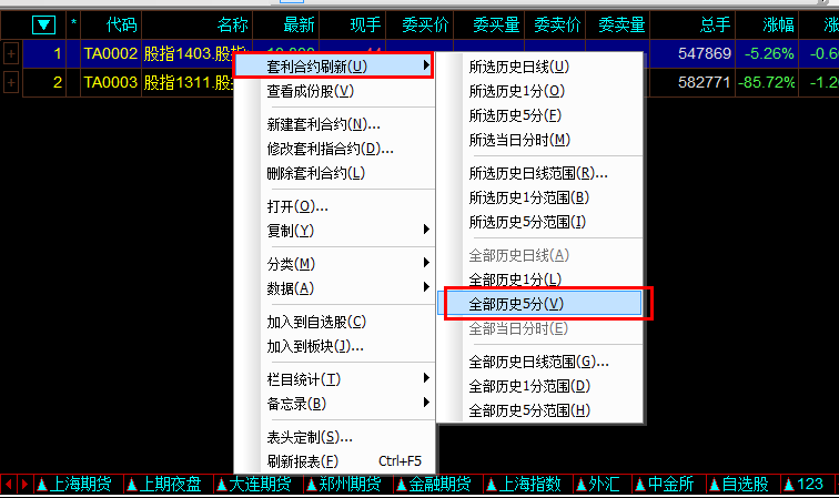 老师 我得套利价差图  棕榈油1401  1405组合  5分钟数据不对  您截个图我看下。     还有啊怎么刷新数据啊