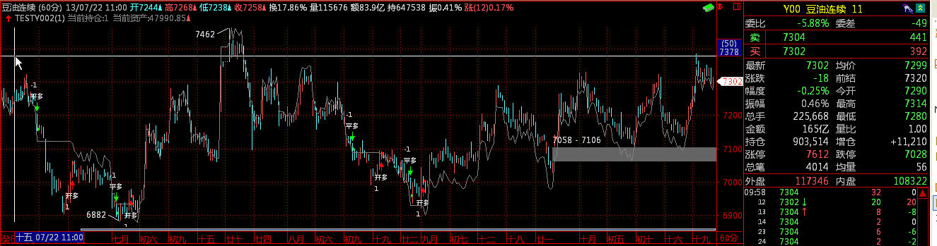 豆油指数合约,放大缩小k线图,信号不闪烁: