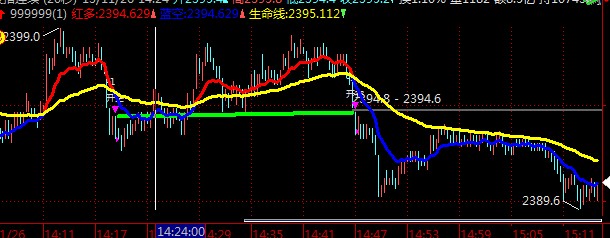 老师好!如下指标型.红线上穿黄线开多下穿平多.蓝线下穿黄线开空上穿平空.谢谢!