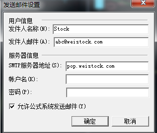 想让策略发送邮件,除了在“允许公式系统发送邮件”处打钩外,另外帐户名、密码怎么设?