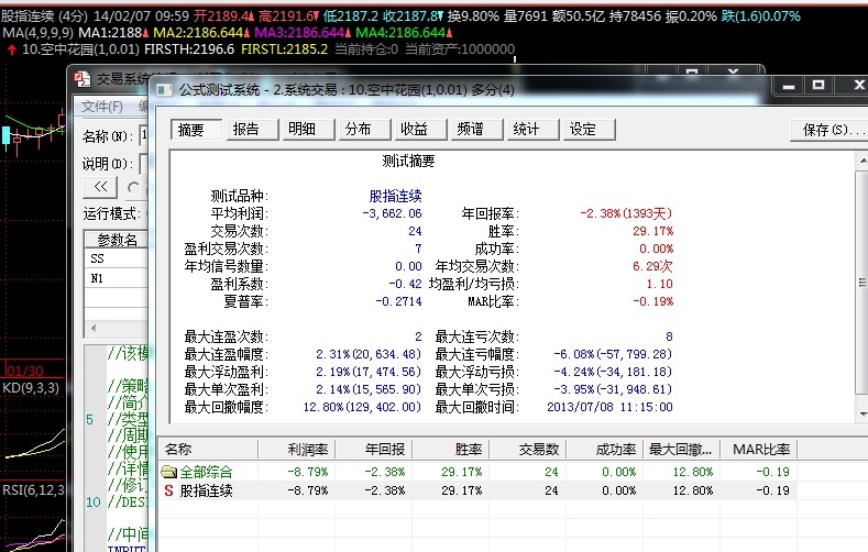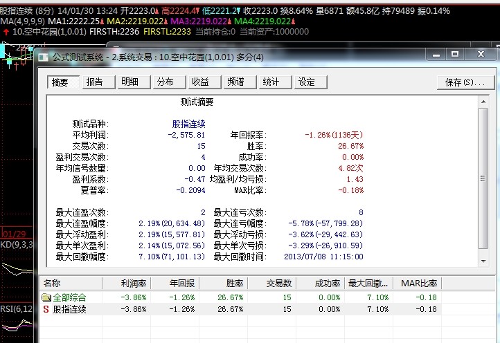 默认的图表交易-系统交易-空中花园策略, 你先在选项的多分钟调成8分钟, 然后你在策略测评的时候, 把多分钟参数调成4分钟, 测出来的结果你记录起来, 然后第二步, 你在工具选项的多分钟调成4分钟, 这个时候你再测试的时候, 默认参数是4, 不用动, 直接测试, 然后你再对比一下结果. 两种方法测试出来的4分钟周期结果是不一致的