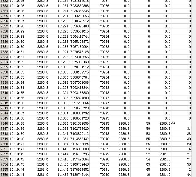 请教:今天的分笔出问题了。7545 10:19:38前的委买委卖量都是0