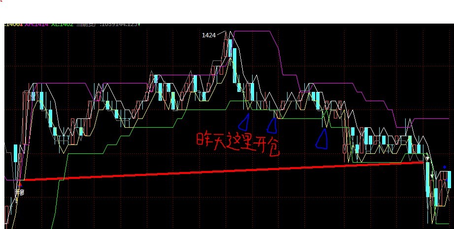 第一个蓝色三角处昨天开了仓,第二第三个不开仓