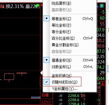 您好,Y轴右键  勾选仅随k线变动