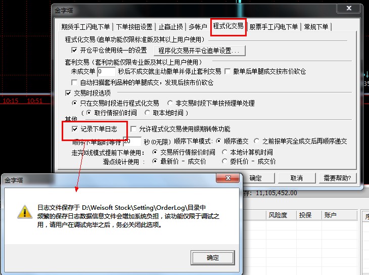 在 交易-下单设置-程序化交易  那勾选下交易日志,明天如果再次出现此问题,我们到时候拿着日志就可以分析解决问题了