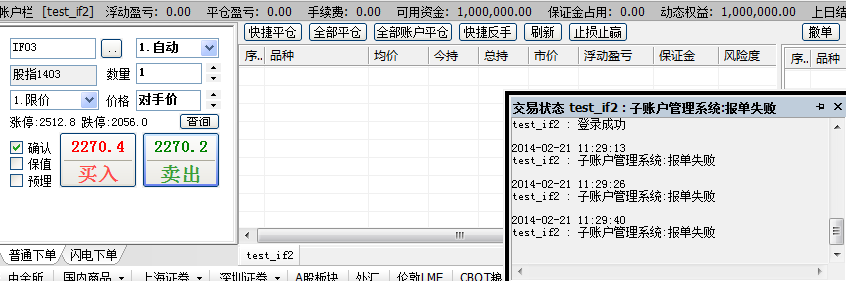 还有  我在开盘期间在服务器端点了一下用户结算  结果 子账户就提示已经结算 就不能操作了