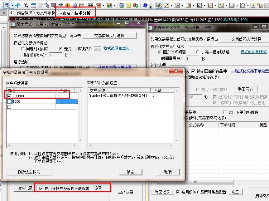 通过账号系数的设置可以一个模拟 一个实盘交易