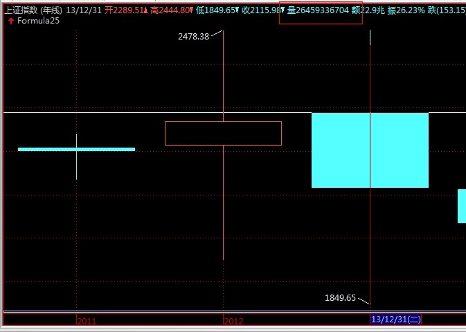k线图上右键有个分析周期选年线,直接看成交量就是了呀