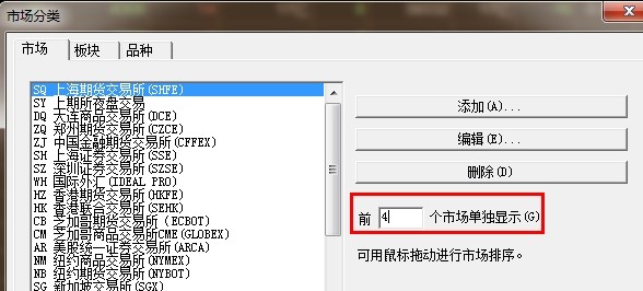 先停止接收数据,工具菜单-》市场与板块里修改 改后重启生效
