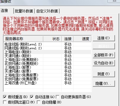 只好手动连接,才有数据跳动,根本没法全自动无人值守交易,全要人盯着机器看数据是否正常