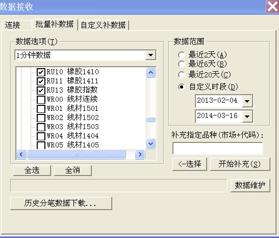 您好,没理解您的意思另外下什么数据。你这个图就是补充那三个橡胶的13年2月4号到14年3月16号的1分钟数据,有什么问题吗?