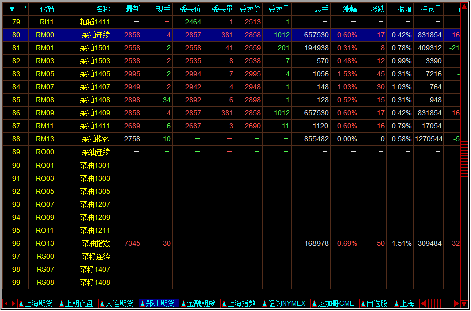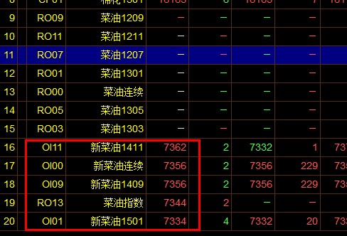 如图。菜油的合约居然都是12年 13年的?菜油指数倒是在正常更新。