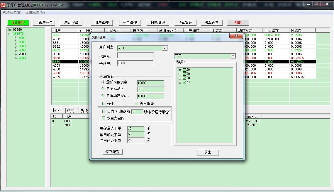 风险控制您设置的是最低10000,您的子账户的资金低于这个值了就会报这个错。