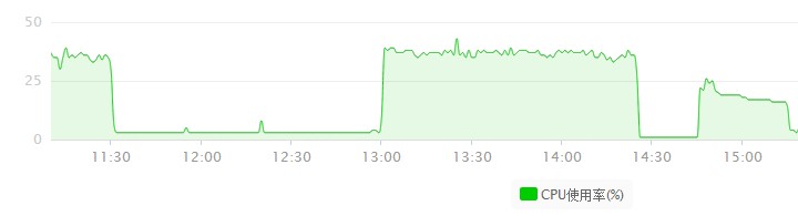 CPU使用率见附件,正常情况下也不到40%,而且比较稳定。缺口就是软件死机的时候。
