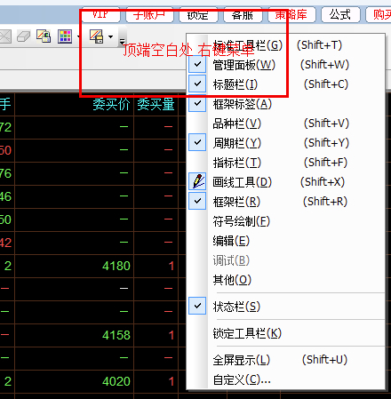 工具栏,品种栏,指标栏这些栏都是可以隐藏的,那么下图的2个栏能不能也增加一下隐藏功能,这东西平时用不到啊