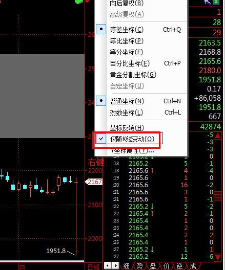 Y价格坐标轴 点击右键 勾选仅随k线变动