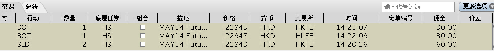 2014-05-22 14:26:23.390    【下单】HSI05 价22943.000000 量2 买卖1 类型0 账户DU178292 Formula 1