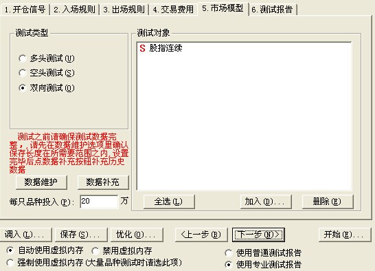 升级到v3.2版以后,在交易系统测试的时候。如果在停止接收数据状态测试历史数据交易信号(可以叫做“离线测试”吧?)。在进行到测试设置的第五步的时候,只要点击“下一步”,系统就自动关闭。