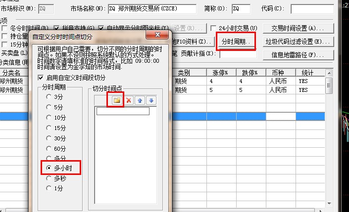 工具菜单-》市场与板块  左边选择市场 右边点击编辑-》分时周期