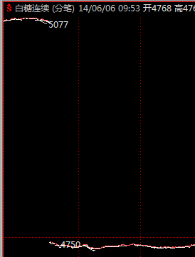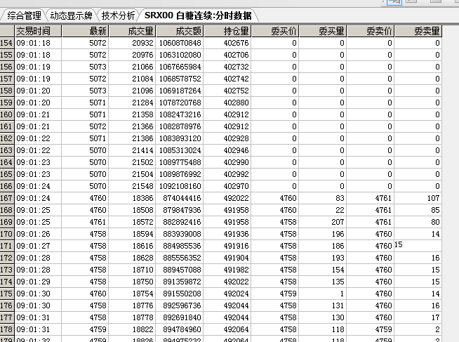 SRX00早盘大概接收了大概不到两分钟的01合约价格,在9点1分到9点2分之间某个时候,跳回1409合约。下图是分笔图。