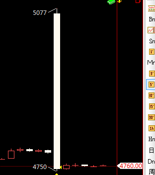 但是,小周期的价格让人看不懂,似乎是开盘换月了,马上又跳回原先的合约了,如下图。