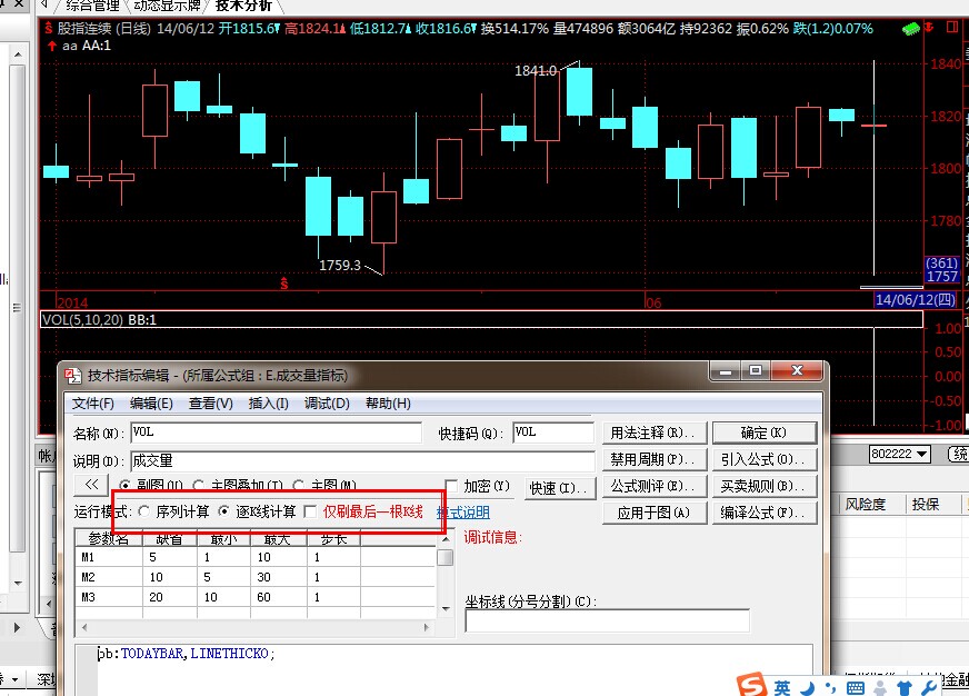 不用勾选仅刷最后一根k,输出值就是1了,你把勾选去掉看下效果