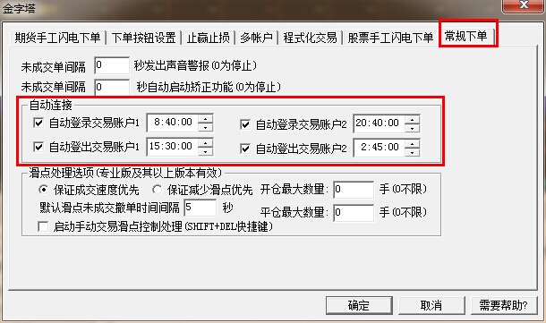 交易-》下单设置-》常规下单里可以设置自动登录和登出交易账户