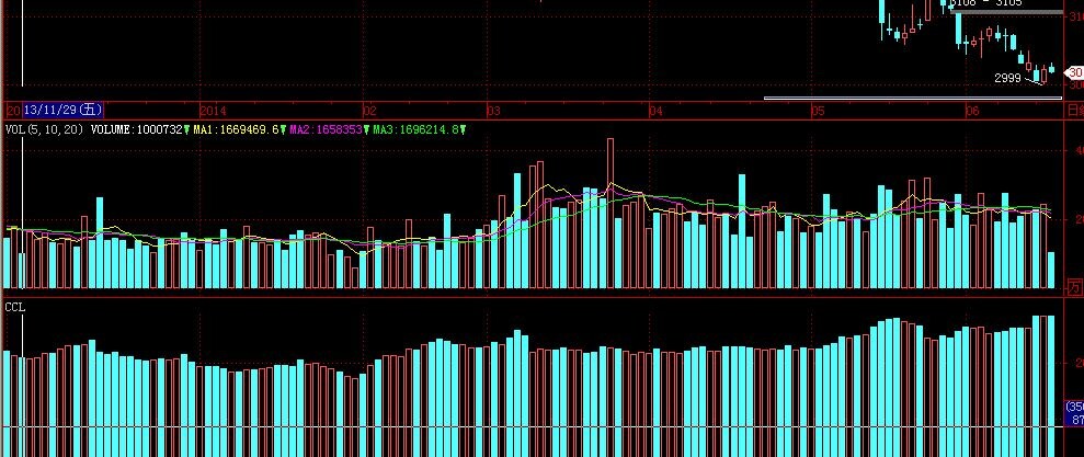 ccl指标里的VOLSTICK去掉就可以显示一条线
