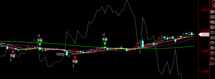 是因为你编的代码里面的量数值太大,挤压了显示空间。坚决方法,变量赋值 用  :=   代替:  或者加上函数,noaxis  解决。 请问你是用均线和其他什么指标编写的代码,是吗?