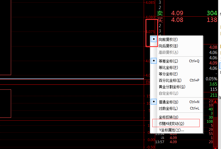 这个问题主要是因为某些要显示的变量值超过了K线图价格范围,导致了K线图压缩。
